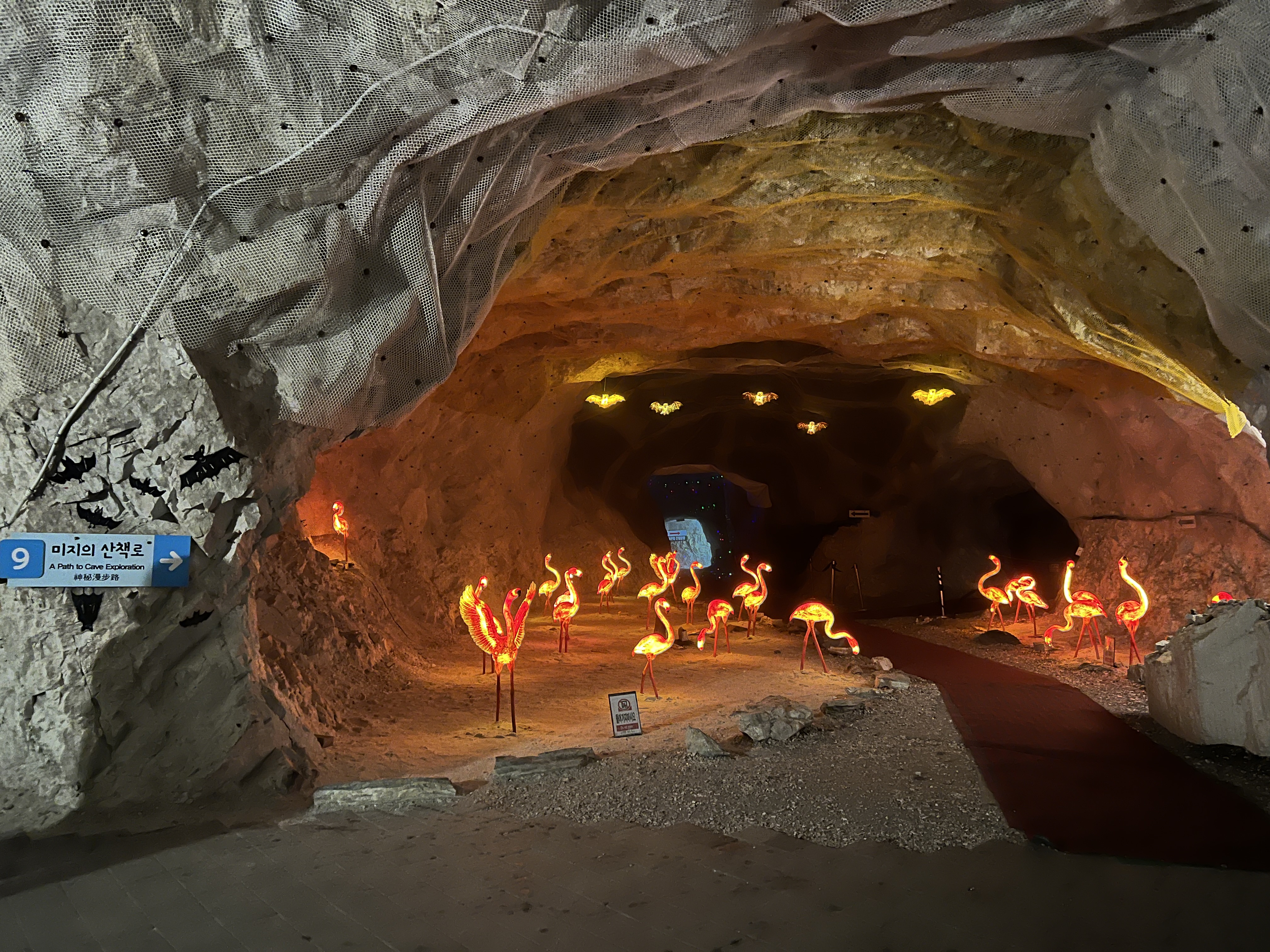 활옥동굴은 총 길이가 2.5km에 달하며, 이중 약 700m 구간이 공개되어 있습니다. 동굴 내부는 각종 빛과 색을 활용한 조명 장치로 꾸며져 있어, 색다른 분위기 속에서 동굴의 아름다움을 감상할 수 있습니다. 특히 동굴 내의 다양한 조각과 설치 미술 작품들이 방문객들의 시선을 사로잡습니다.